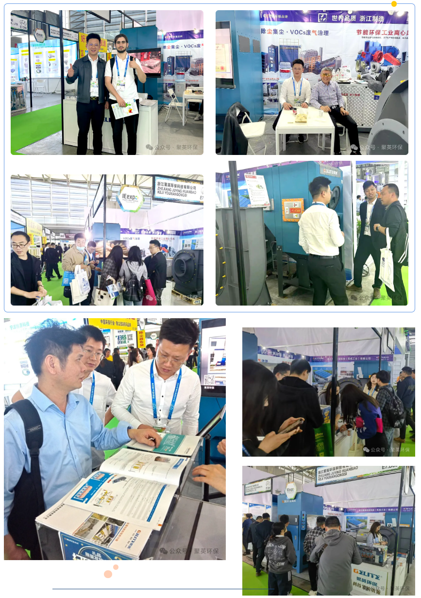 展位設計聚焦于創(chuàng)新產(chǎn)品的展示、完善的客戶服務介紹,以及我們對于環(huán)保行業(yè)發(fā)展節(jié)能趨勢的深刻洞察。這些元素共同構成了一個引人入勝的展示空間,讓每一位參觀者都能深刻感受到浙江聚英在環(huán)保領域中的不斷探索。