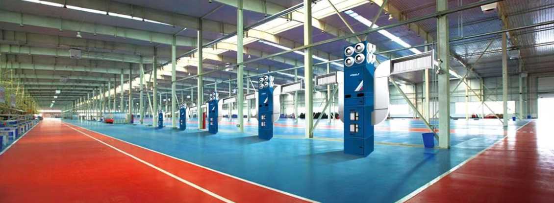 車間自循環(huán)煙塵凈化器是將凈化后的空氣送入工作區(qū),并在地面上形成一層較薄的空氣層。空氣層是由較涼的新鮮空氣擴(kuò)散而成。室內(nèi)的熱源(人員及設(shè)備)產(chǎn)生向上的對(duì)流氣流。新鮮空氣由于熱源的浮力作用使其向室內(nèi)上部流動(dòng)并引成室內(nèi)空氣運(yùn)動(dòng)的主導(dǎo)氣流。排風(fēng)口設(shè)置在設(shè)備的頂部,并將污染空氣吸入設(shè)備內(nèi)部。室內(nèi)自循環(huán)一體的送風(fēng)速度約為<0.5m/s左右。送風(fēng)的動(dòng)量很低以致對(duì)室內(nèi)主導(dǎo)氣流無(wú)任何實(shí)際的影響。